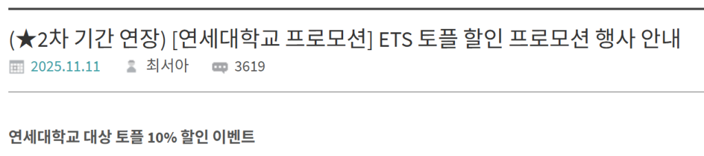 자기개발비용 14만원(이었나?)으로 RLWS+Voca 사고 한 반년정도 공부한 뒤에 시험을 봤다. 연세대학교 재학생들은 아마 OIA에서 토플 할인 프로모션을 받아서 $1=1500원인 미쳐버린 환차손을 멘징 받을 수 있다.
